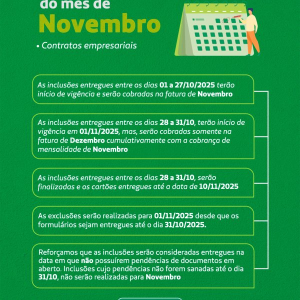 Consulte aqui o Calendário de Movimentações do mês de Novembro.