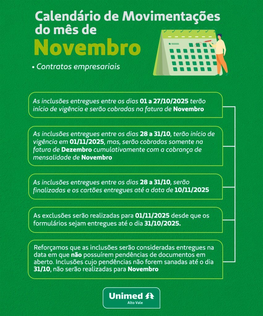 Consulte aqui o Calendário de Movimentações do mês de Novembro.